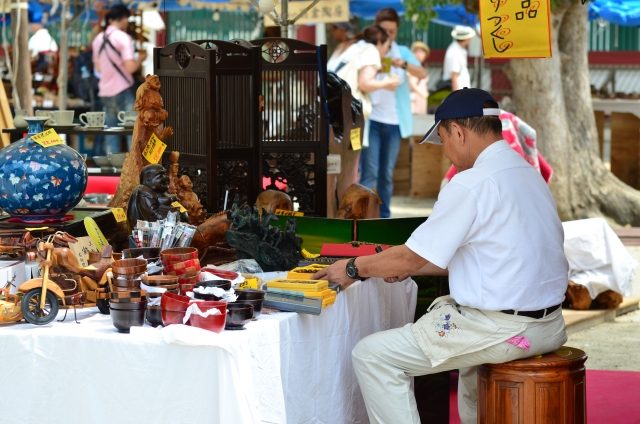 大昔の縁日の露店は、子供だけじゃなくて、大人が必要な日用品を手に入れる場所でもありました。商店街も市場も近くになくても縁日のお寺に行けば、色々なものが買えました。今でもご年配者が縁日に行けば、珍しい物をお土産に買っています。そして、上等文句が「これは普通じゃ売ってない」「簡単には買えない」と言って自慢したりします。今でも終い弘法や終い天神では、年末年始の必需品から食料品日用品、更には骨董品など様々な露天出店があります。そして、その名残が今の縁日でもあります。乾物や七味や包丁や箸、スーパーやホームセンターで買うよりも個性豊かで味わいのある商品が多いです。最近ではアイデアグッズもあり、テレビ通販やセレクトショップより面白い掛け合いも見物です。そして、昔からの意図か主催者や寺社の意向を受けて、手作りのモノ限定の縁日の「市」もあります。蜂蜜やお茶の生産者、パンや焼き菓子なども売っています。蜂蜜は産地が分かり日本蜜蜂が集めたモノ、農薬有機栽培のお茶、天然酵母のパンや、保存料など無添加のクッキーなど、本当に簡単には手に入らないものばかりです。
