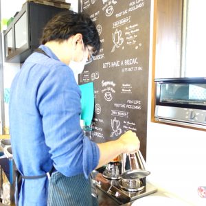 完成! 珈琲は不思議とはじめはおいしく 後からしぶみがでてくるものもありますが、 巧豆館さんの珈琲は最後まで美味しく飲めました! みなさんおうちカフェを楽しむために 珈琲豆を買いに来られているそうです。 さてこの巧豆館。日に日に便利・変化がありました。