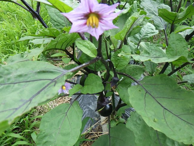 鳥飼茄子の花も咲いています。今の花に実がなる頃は、夏も終わりになることでしょう。