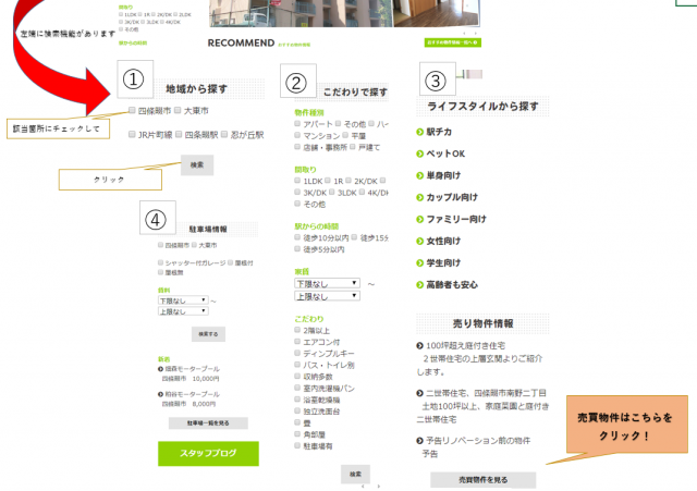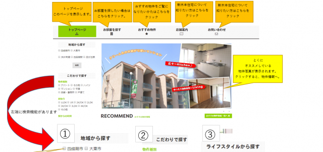 こんにちは! 今回はホームページの見方に関する説明の資料をつくりましたので、 こちらに画像をはります♪ たまたまこちらのブログからご覧になった方、 携帯電話からご覧になっている方、 検索の方法やさらに簡単に便利に利用されたい方いらっしゃいましたら、 ぜひごらんくださいませ。