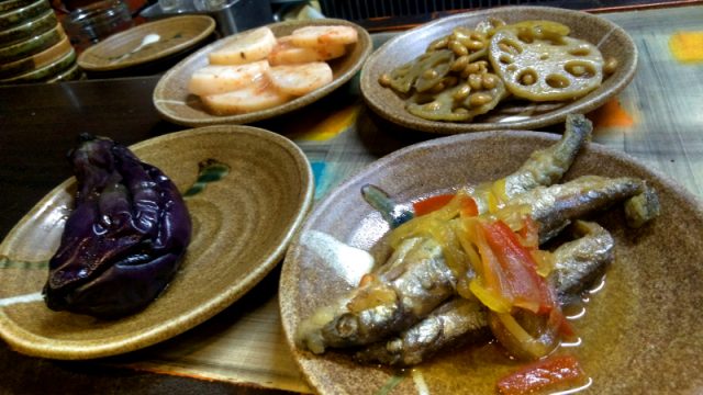 また、小皿料理がとても美味しいです。筆者のお気に入りは画像右下にあるシシャモの南蛮漬けです。シシャモを南蛮漬けにするなんて我が家以外にあるのだと感心したものです。我が家お味の違いは、ローリエがあるかないか。 ちなみ、弊社社長のお気に入りは、画像には収まってませんが、マッシュパンプキンです。