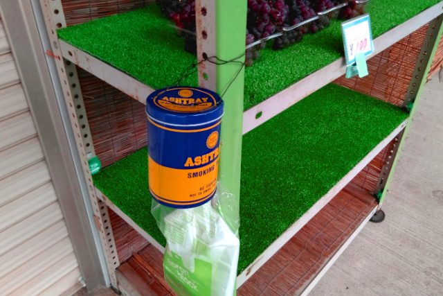 お金を入れる缶の下に、ちゃんと持って帰れるように、ビニール袋がありました。