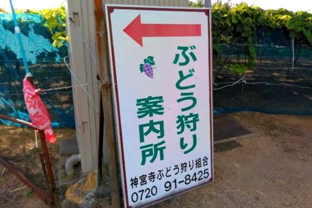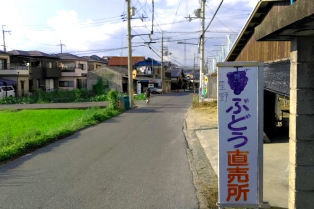 子供がいれば「ぶどう狩り」。大人でも「ぶどうの直売所」巡りでとても楽しめます。 ただ、少し道が細いので、車で行くのは要注意です。 第二京阪の側道を通る機会が多い人は、この看板を一度は見た事があるのではないでしょうか?