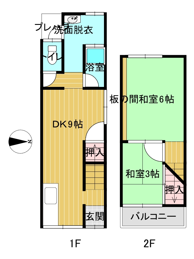 駅付近の連棟2階建 バストイレ別で使いやすい!